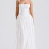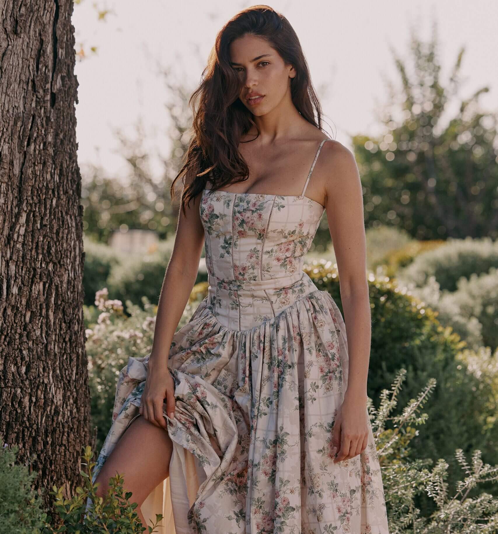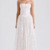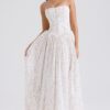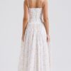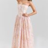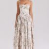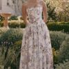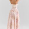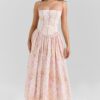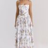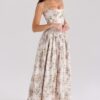 Son imprimé fleuri délicat sur fond crème évoque la douceur des jardins provençaux, tandis que sa coupe structurée avec corset intégré sublime naturellement votre silhouette